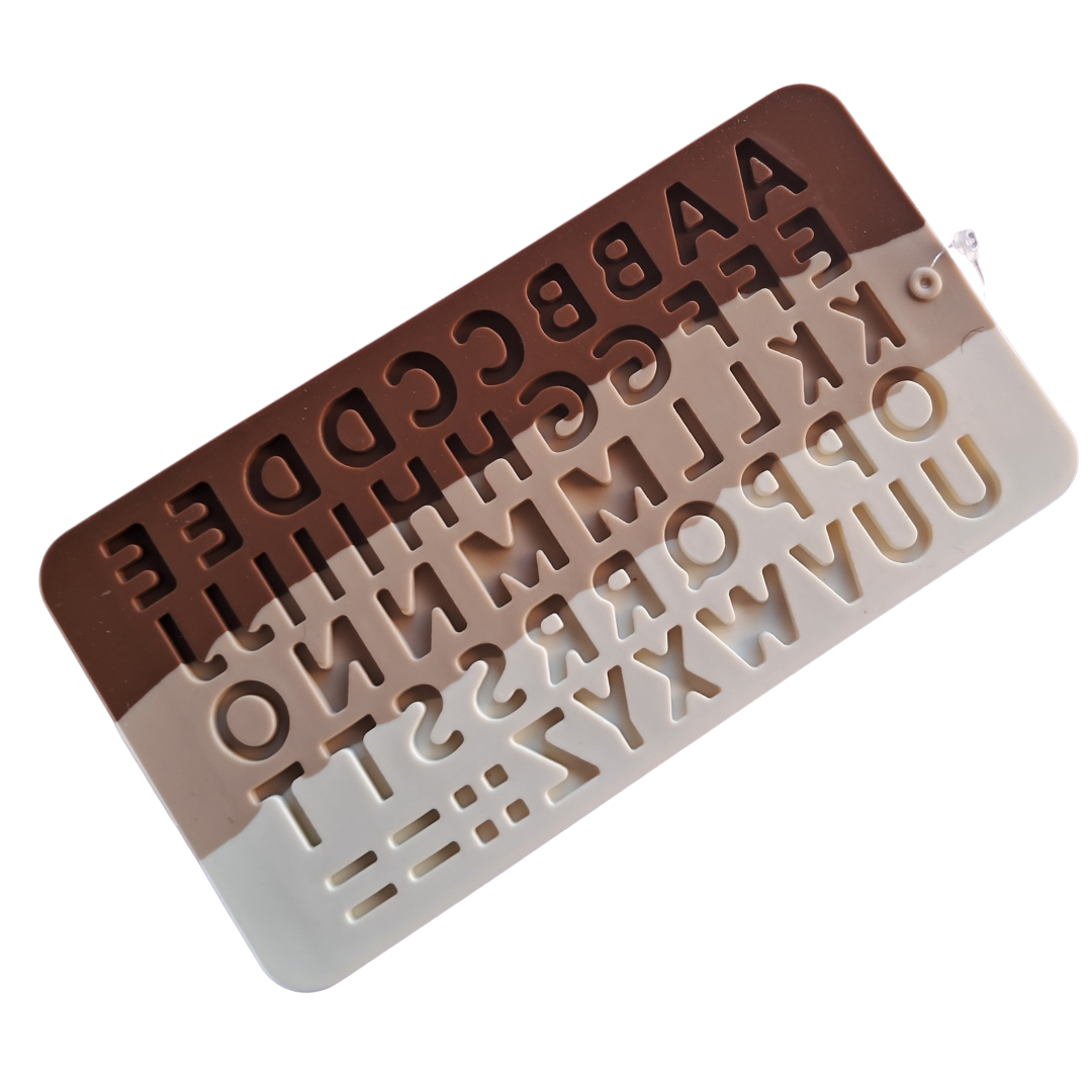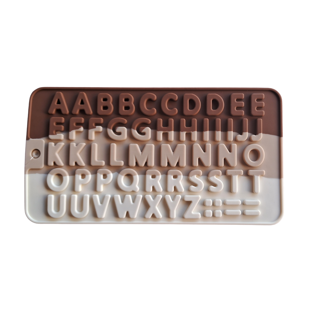 Molde de silicona con abecedario completo, ideal para crear letras personalizadas en chocolate, fondant, gelatina, caramelo, isomalt o masa flexible. Perfecto para decorar tortas, cupcakes, tabletas de chocolate, galletas y regalos personalizados.