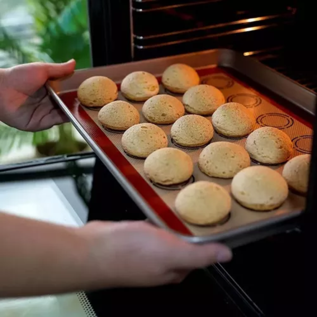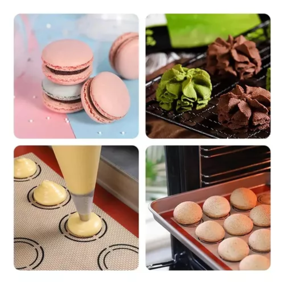 Ideal para repostería, esta placa de silicona de alta calidad garantiza una cocción uniforme y sin que los alimentos se peguen. Perfecta para macarons, galletas y más, permite desmoldar fácilmente sin necesidad de materia grasa.