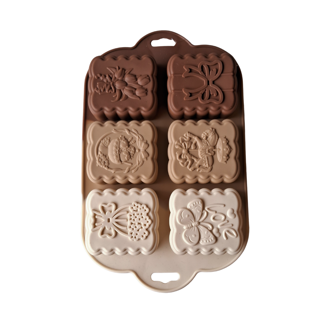 Cuenta con 6 cavidades rectangulares, ideales para preparar galletas caseras, o bien crear velas y jabones personalizados.