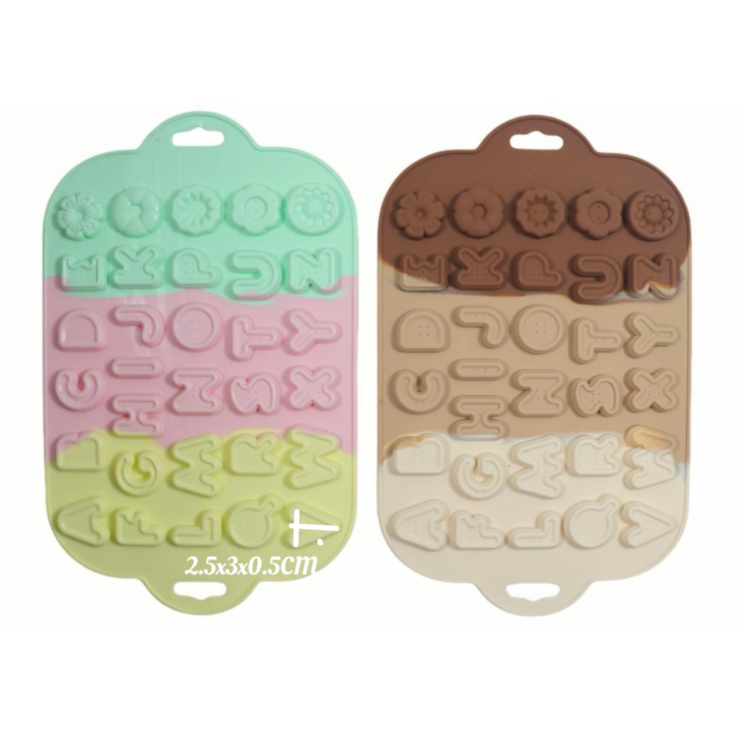 Cavidades: 31 cavMedidas: Largo: 2,8 cm / Ancho: 2,2 cm / Profundidad: 0,5 cmMedidas Molde: Largo: 28,5 cm / Ancho: 17,5 cm