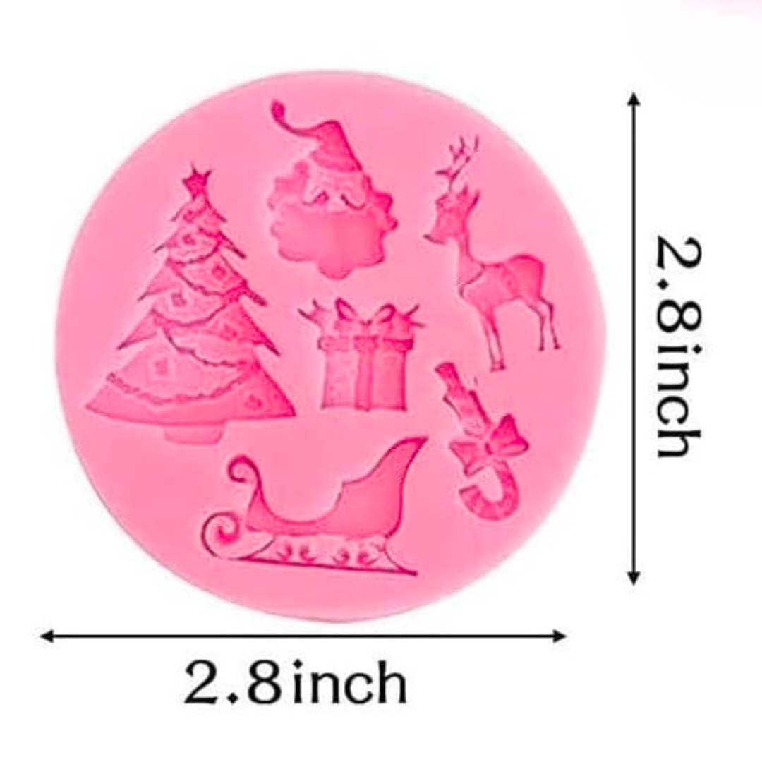 Ideal para darle un toque festivo y creativo a tus postres, chocolates, fondant, galletas, jabones o manualidades. Con diseños clásicos como árbol, Santa, reno, regalo, trineo y bastón de caramelo, podrás decorar fácilmente y sorprender en esta Navidad.