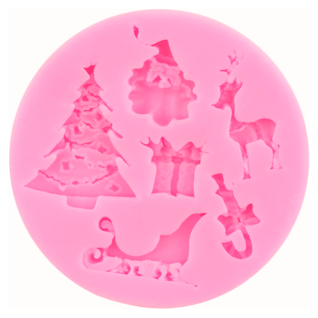 Este molde navideño de silicona trae 6 figuras clásicas de Navidad, todas con relieve en detalle: