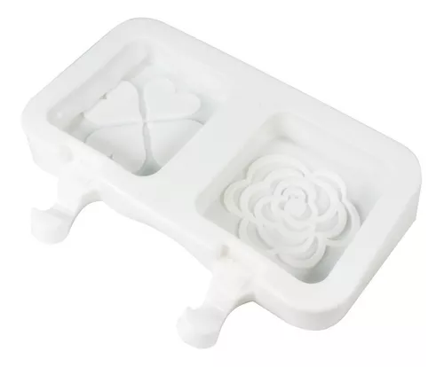 Molde de Silicona Blanco con dos cavidades: una delicada forma de trébol y otra encantadora de rosa. Este molde es la herramienta perfecta para agregar un toque artístico y romántico a tus creaciones culinarias.