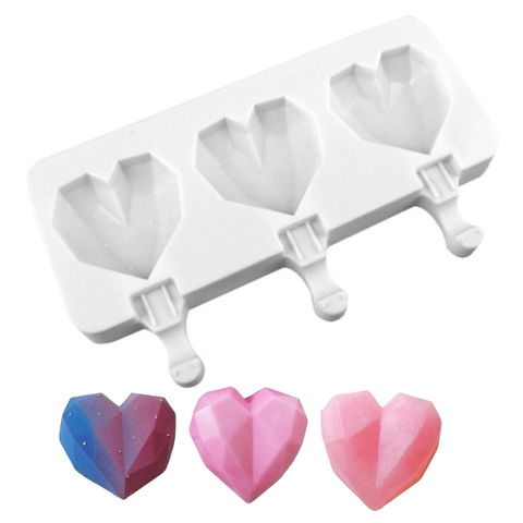 ¡Explora la elegancia y el encanto con nuestro Molde de Silicona Corazón Facetado Blanco de 3 Cavidades!