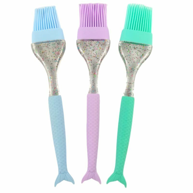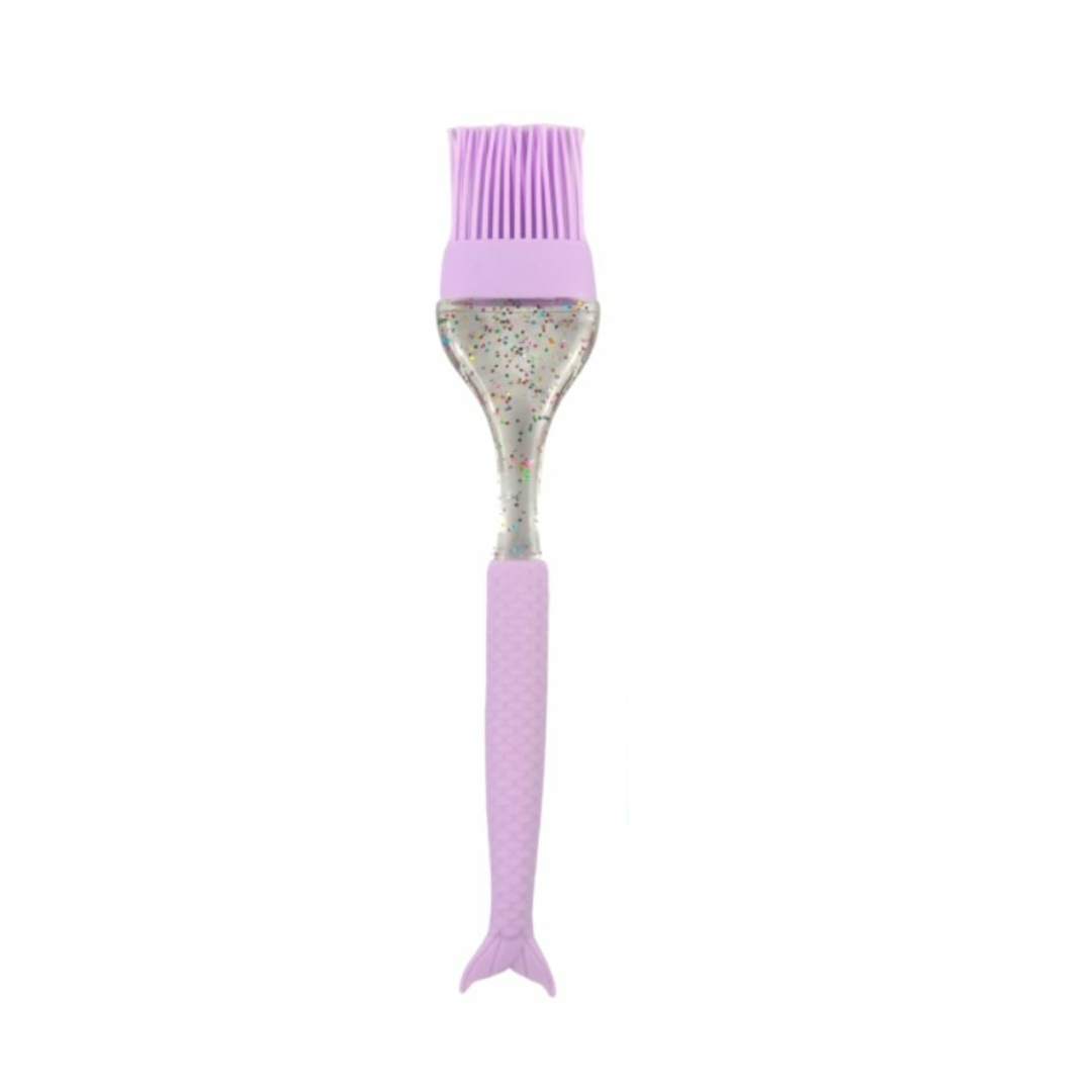¡Embellece tus creaciones reposteras con nuestro Pincel para Repostería en forma de Cola de Sirena con Glitter, disponible en cautivadores colores celeste, lila y verde!
