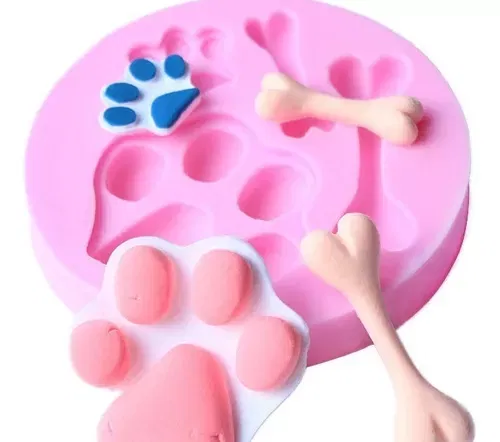 Dale un toque tierno y encantador a tus delicias con nuestro Molde de Silicona en un hermoso tono rosado, diseñado con dos adorables huellitas y huesos.